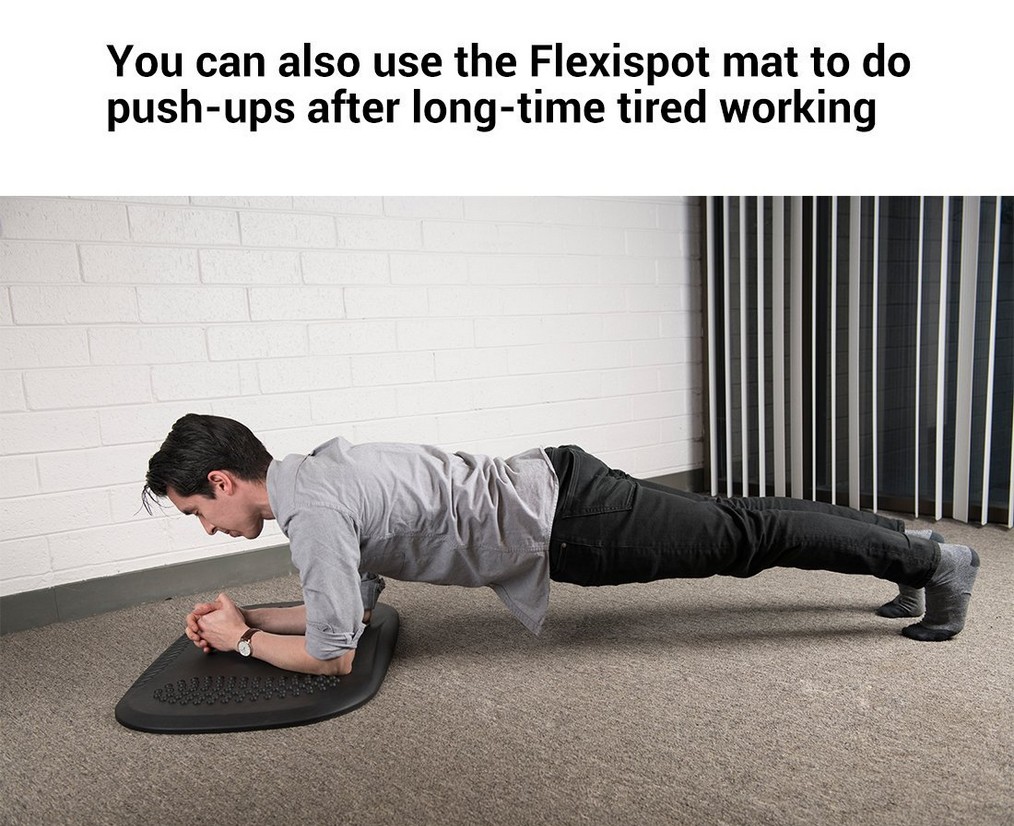 After long-period standing on the hard floor while you work, you may suffer from pain of back, coccyx, and leg, so you need an anti-fatigue comfort floor mat. Flexispot active and anti-fatigue not-flat mat contains massage points and mounds which help wake up tired feet and promote blood circulation. The mat supplies multiple healthy options for more dynamic and comfortable standing. So it will make you love standing!