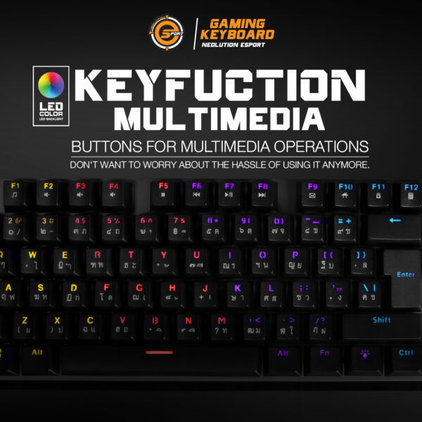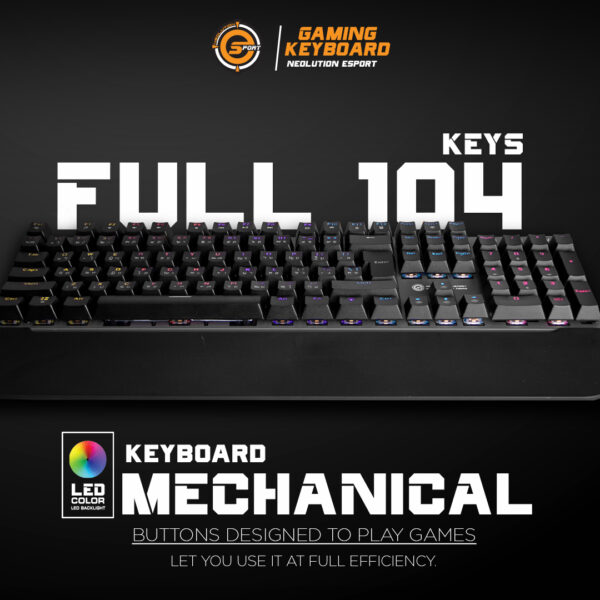 (จองล่วงหน้า) คีย์บอร์ดเกมมิ่งพร้อมไฟ RGB ทรง Ergonomic Design มีระบบ Key Anti Ghosting ป้องกันการกดปุ่มพร้อมกันในขณะเล่นเกม ปุ่มกดความเร็วสูง มีโหมดไฟถึง 12 โหมด