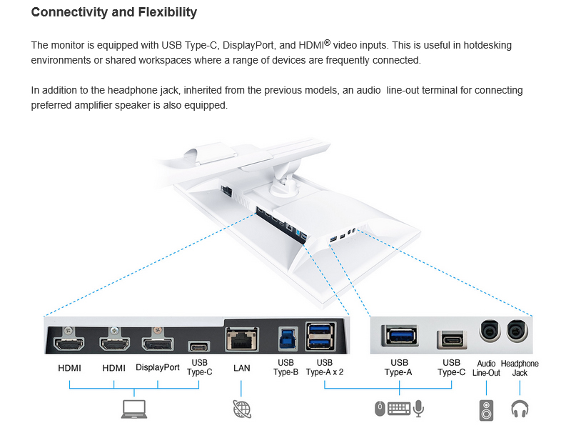 | USB อัพสตรีม (Upstream) | Type-B (USB 5Gbps), Type-C (USB 5Gbps, Power Delivery 94 W max.) |
