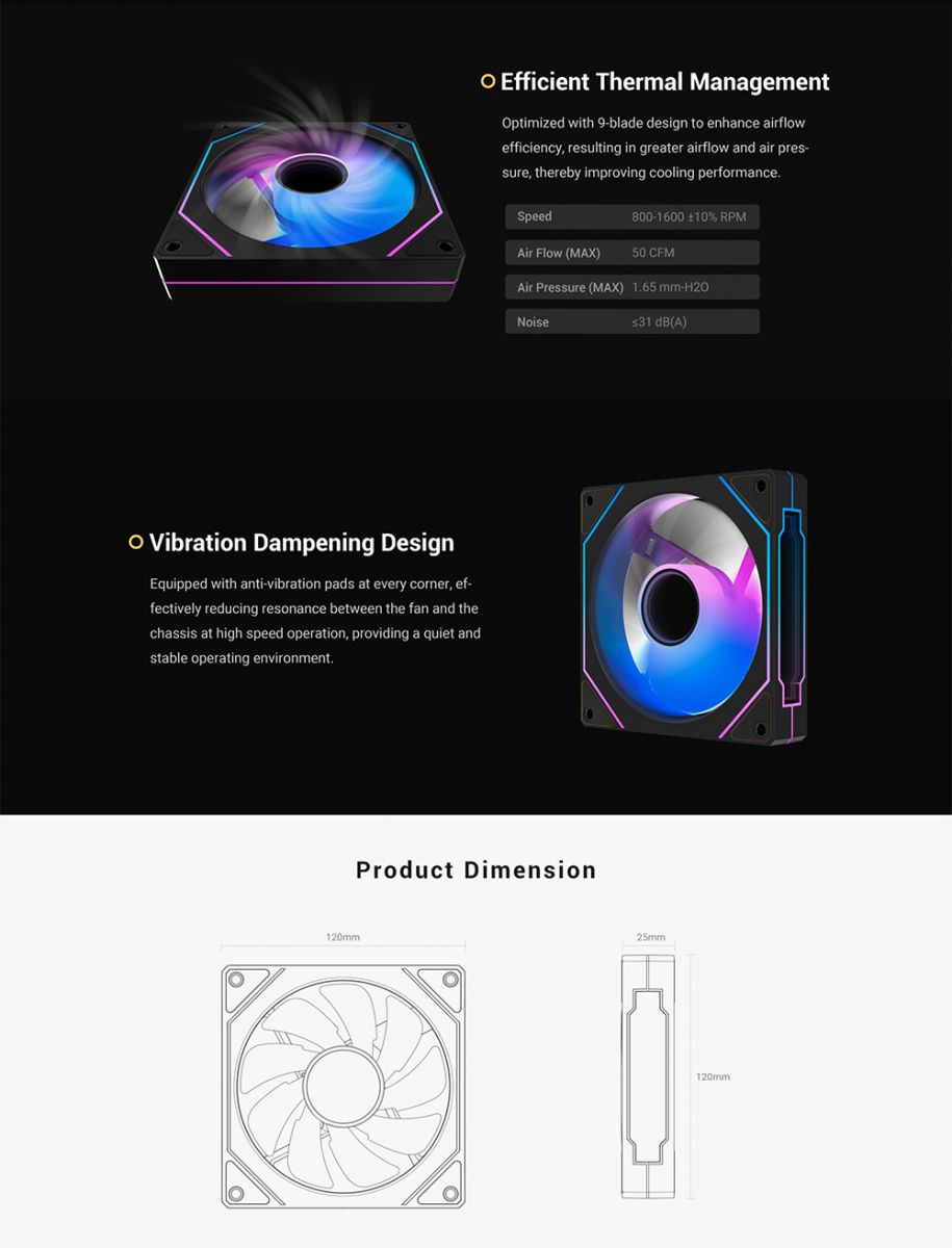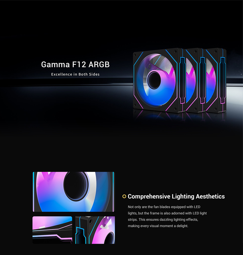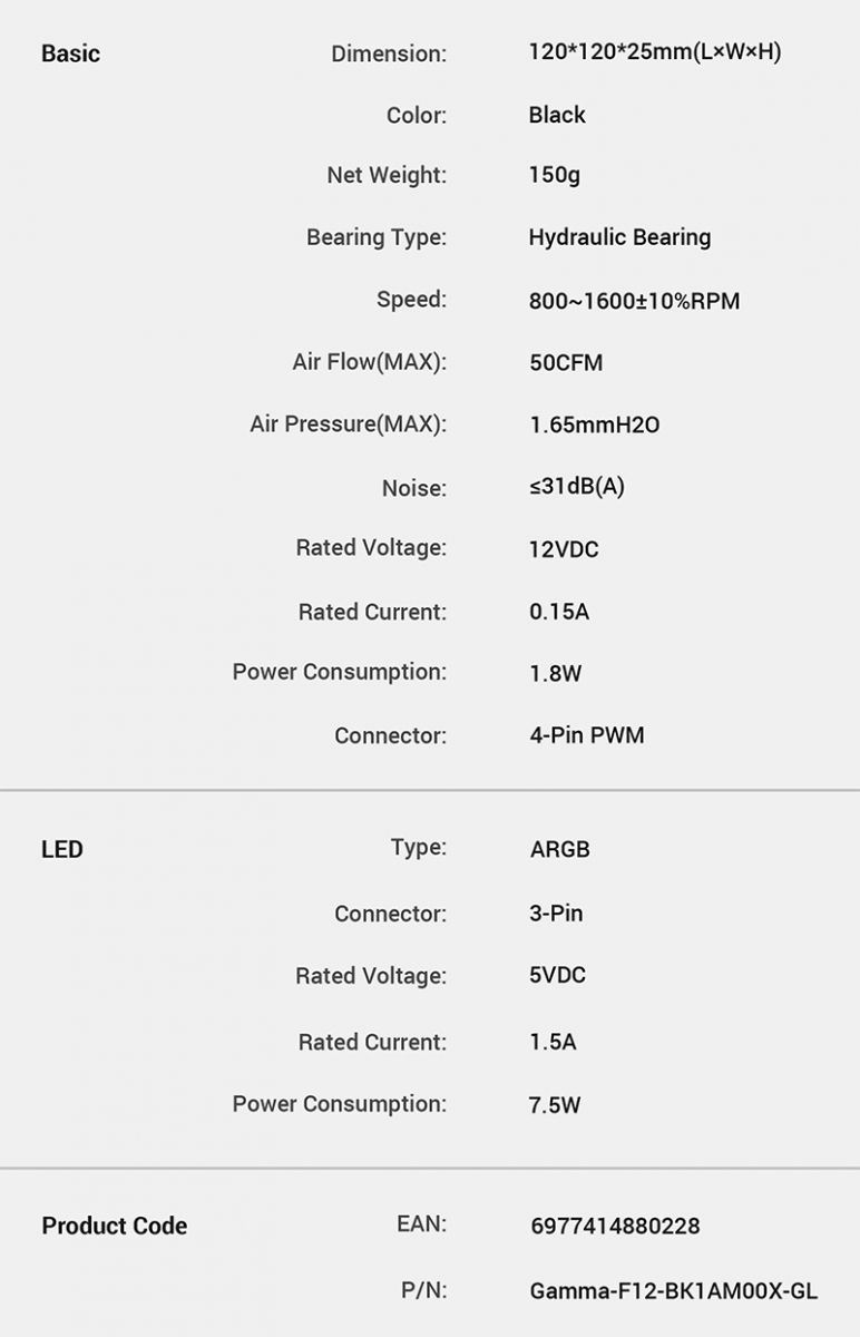(จองล่วงหน้า) พัดลมระบายความร้อน 120mm ไฟ ARGB, PWM ควบคุมอัตโนมัติ เสียงเงียบ 31dB ลมแรง 50 CFM ลูกปืน Hydraulic (GAMMA-F12-BK1AM00X-GL)
