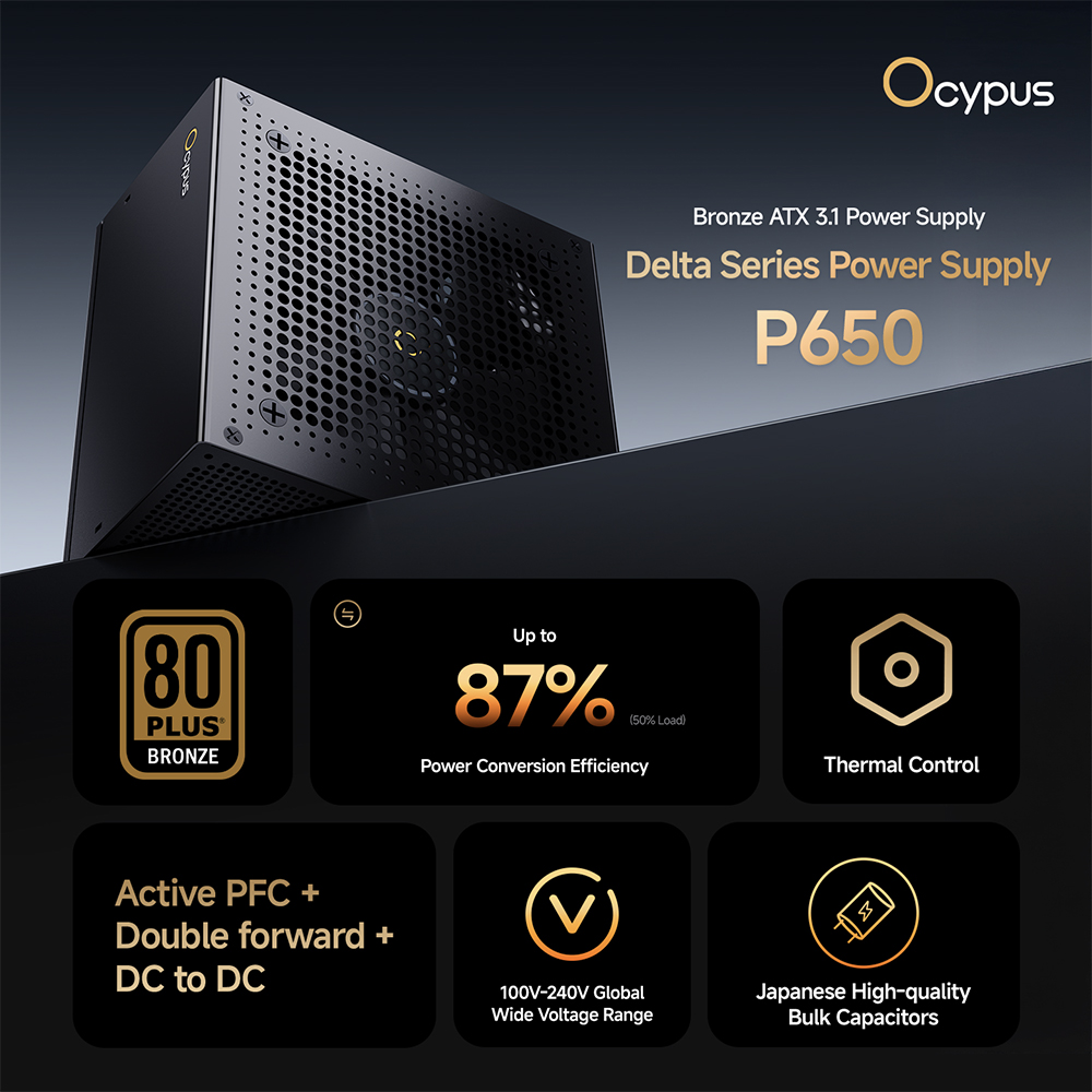 (จองล่วงหน้า) พาวเวอร์ซัพพลาย 650W ประสิทธิภาพสูง 80 PLUS Bronze ตัวเก็บประจุญี่ปุ่นคุณภาพดี รองรับไฟ 100-240V ระบบระบายความร้อนอัจฉริยะ (DELTA-P650-B1FDBK024X-EU)