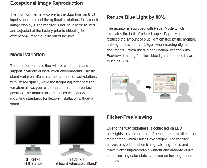 S1734-HBK: with Height Adjustable Stand, black S1734-HGY: with Height Adjustable Stand, gray |