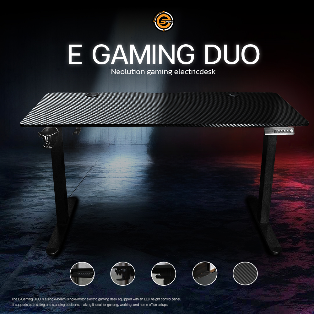 Neolution E-Gaming DUO โต๊ะปรับระดับไฟฟ้ามอเตอร์คู่ระดับพรีเมียม ออกแบบมาเพื่อความมั่นคงสูงสุดและสุขภาพของผู้ใช้งาน ด้วยโครงสร้างขาเหล็กหนาพิเศษที่ช่วยลดอาการสั่นสะเทือนขณะปรับระดับ พร้อมฟังก์ชันอัจฉริยะที่ช่วยให้การสลับระหว่างการนั่งและยืนทำงานเป็นไปอย่างราบรื่น