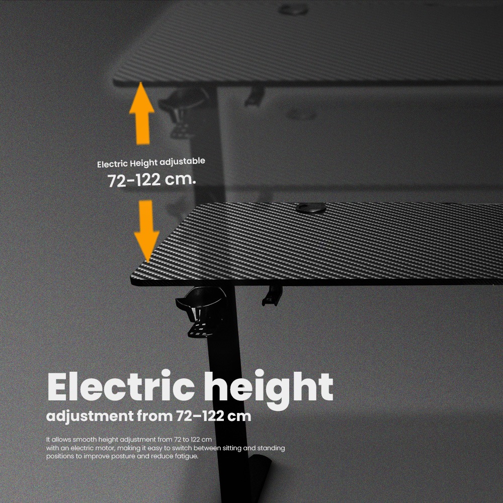 (จองล่วงหน้า) โต๊ะไฟฟ้า Dual Motor เงียบ 45dB ท็อปคาร์บอนไฟเบอร์กันน้ำ รับน้ำหนัก 120 กก. ขนาด 120×60 ปรับสูง 72–122 ซม.