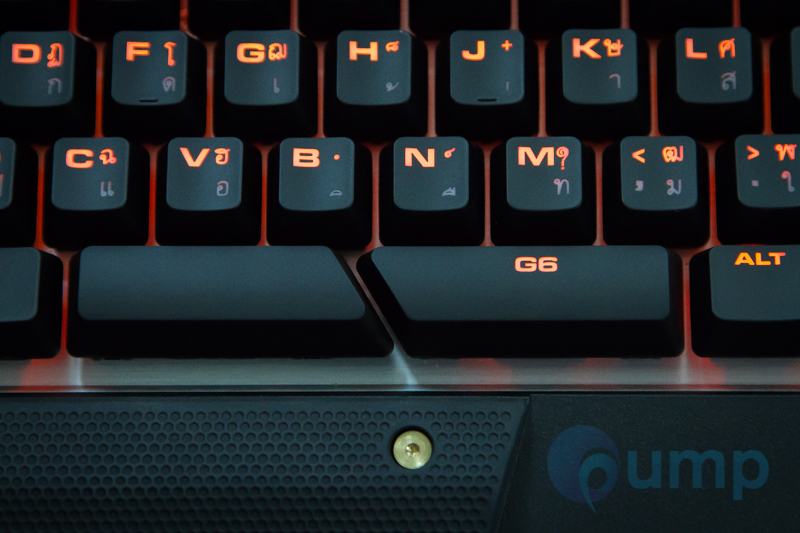 มีปุ่ม Macro อีกปุ่มครับอยุ่ตรงSpacebar มันตัด space bar เป็นครึ่งแล้วทำให้เรามีปุ่ม macro เพิ่มมาอีกหนึ่งปุ่ม เป็นทั้งหมด 6ปุ่มนั้นเอง