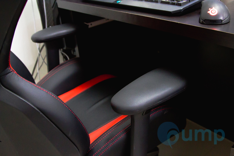 ส่วนของแขนเก้าอี้ผมไม่รู้ว่ามันคือวัสดุอะไรนะครับจะว่าหนังก็ไม่ใช่ ยางก็ไม่ใช่อีกแต่คิดว่าน่าจะเป็นยางผสมพลาสติก แต่ไม่ได้เป็นพลาสติกแข็งๆแบบเก้าอี้ถูกๆทั่วไปแน่นอน มันนิ่มๆแต่ก็แข็งๆในเวลาเดียวกันเอาเป็นว่ารวมๆวัสดุมันให้ความรู้สึกที่ดีมากๆ และมันก็ดูแข็งแรงมากๆด้วยครับ เหมือนเป้นวัสดุที่ออกแบบมาให้รับมือการใช้งานที่หนักหน่วงตลอดเวลาเพราะเราจะต้องท้าวแขนแทบทุกครั้งที่นั่งแน่นอนมันจะเป็นส่วนที่รับมือกับน้ำหนักเราบ่อยที่สุด ความแข็งแรงจึงเป็นสิ่งสำคัญมากสำหรับแขนเก้าอี้ครับ