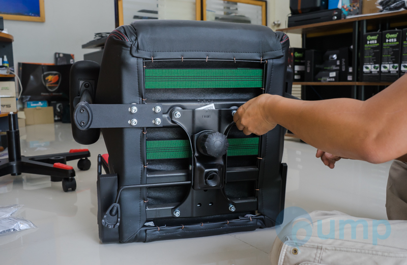 จากนั้นก็มาขันน็อตข้างใต้เบาะ4ตัวออกจากนั้นนำแกนกลางมาทาบแล้วขันน็อตยึดแกนกลางกับเบาะล่าง