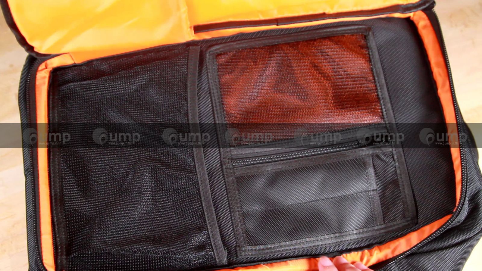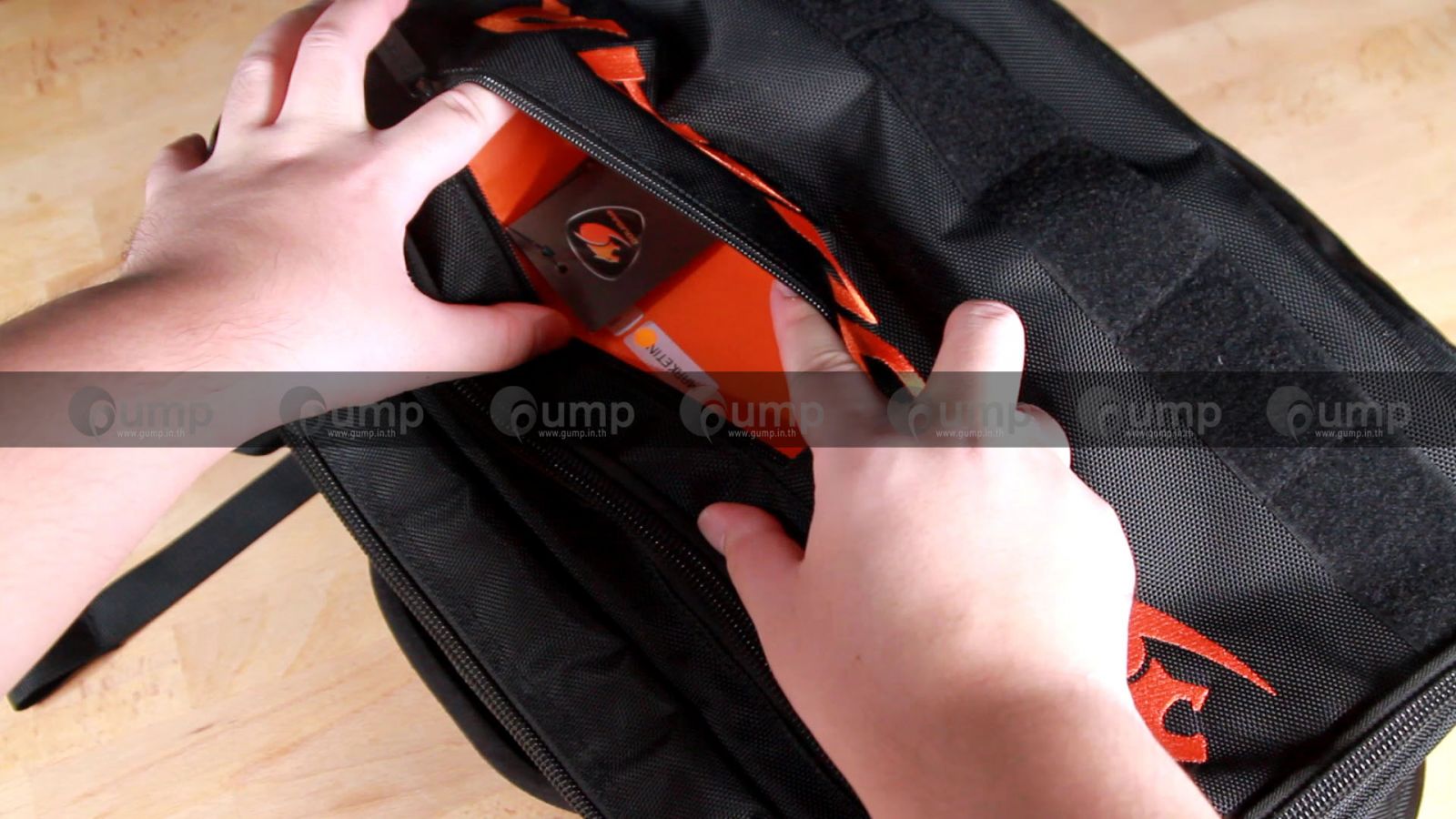 ข้างในกระเป๋ามีซอกสำหรับอุปกรณ์เกมมิ่งทุกๆอย่าง ไม่ว่าจะเป็น Notebook เมาส์ แผ่นรองเมาส์ คีย์บอร์ด หูฟัง โทรศัพท์